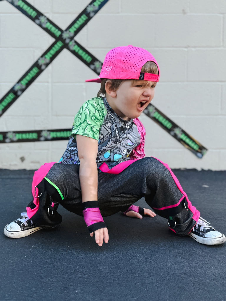 Hot Pink & Black Childs Rockstar Fingerless Gloves for Kids and Adults