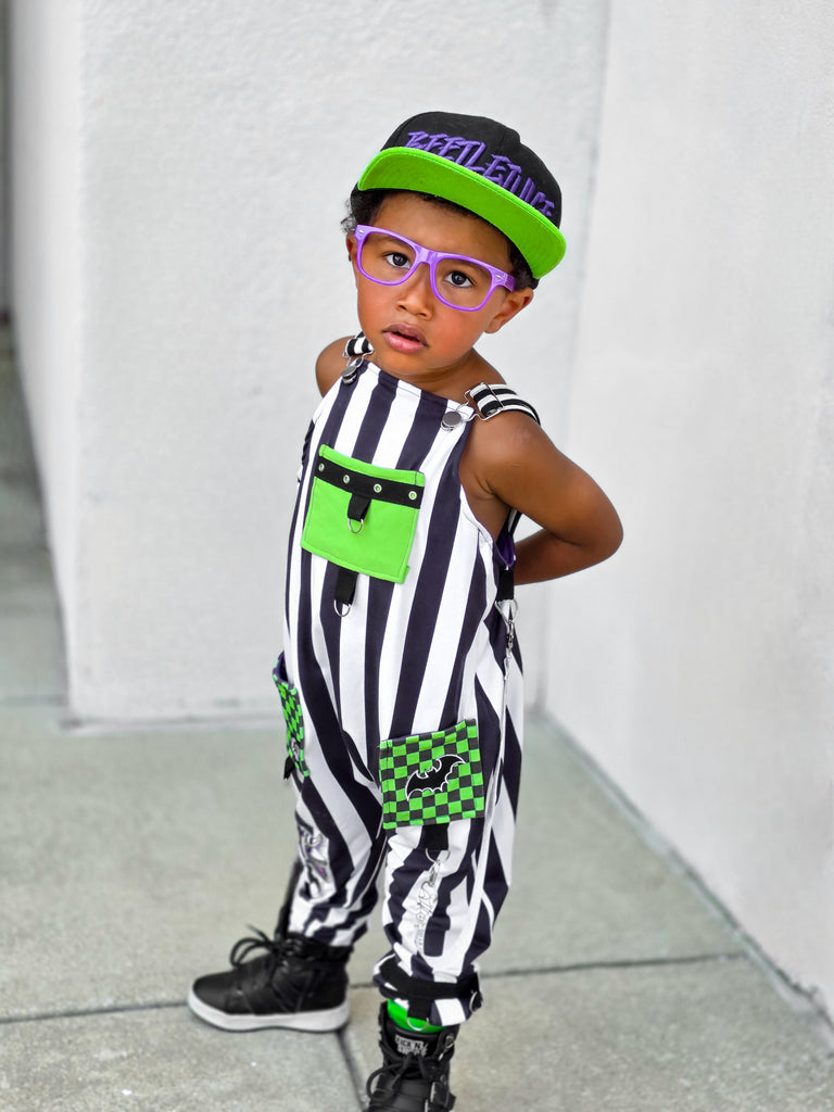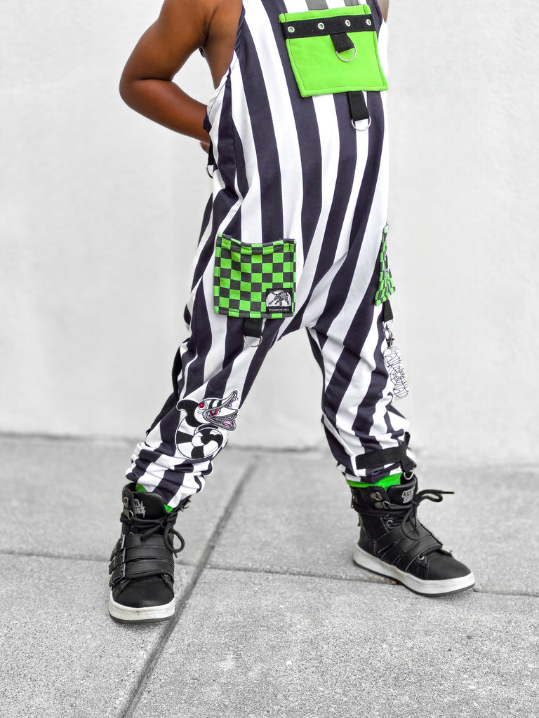 Monochrome Striped Overalls Beetlejuice Burton Kids Unisex Sizes Custom Made Dungarees